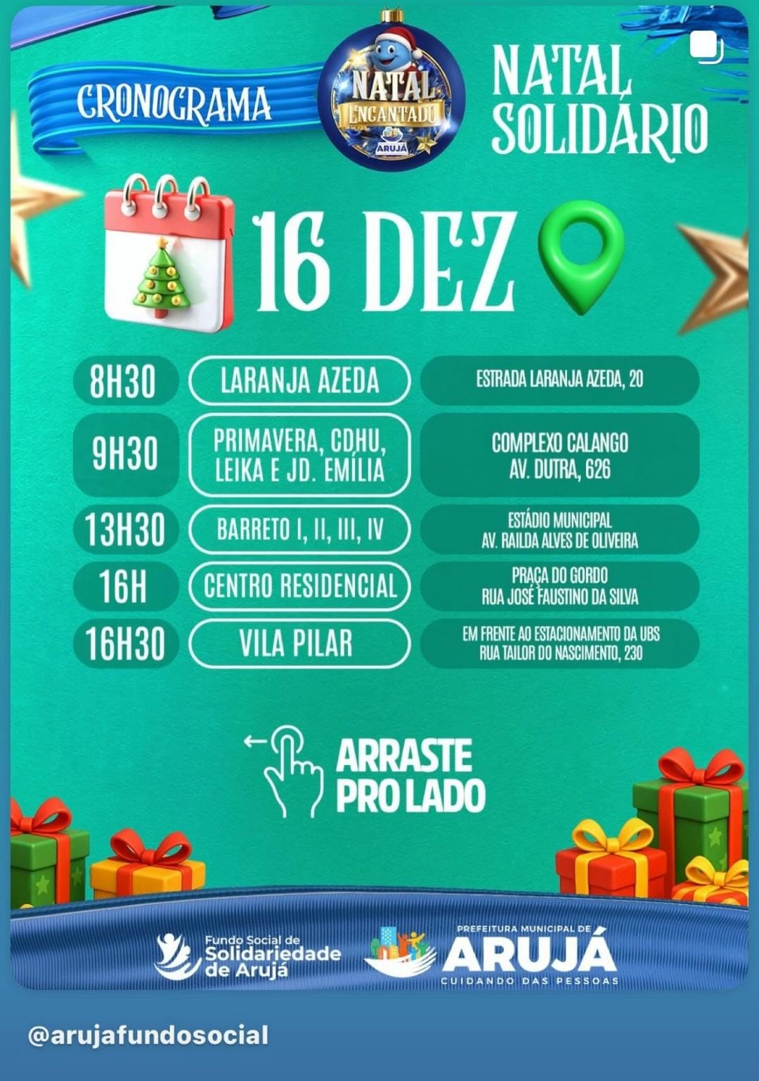 Confira o cronograma do “Papai Noel nos Bairros”: